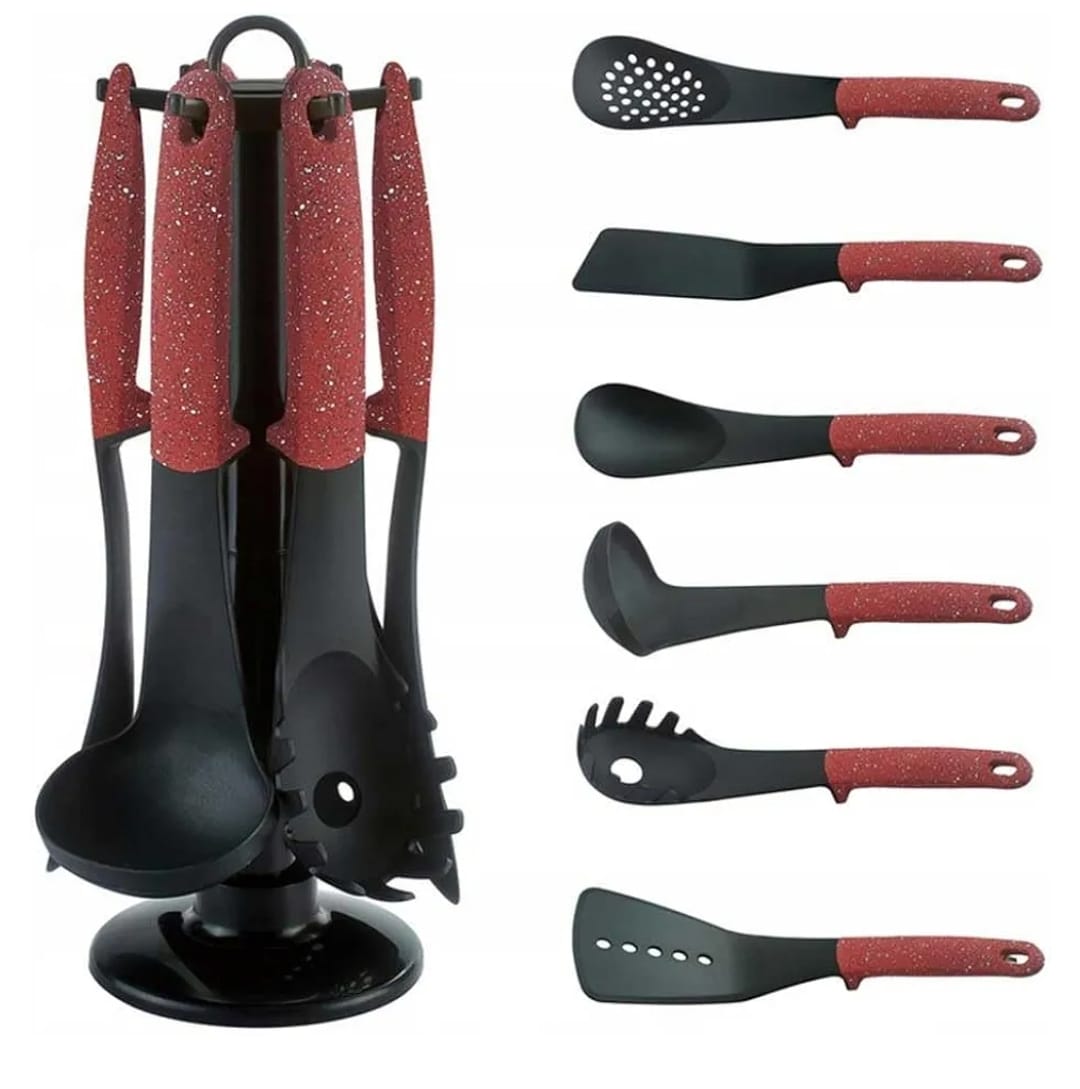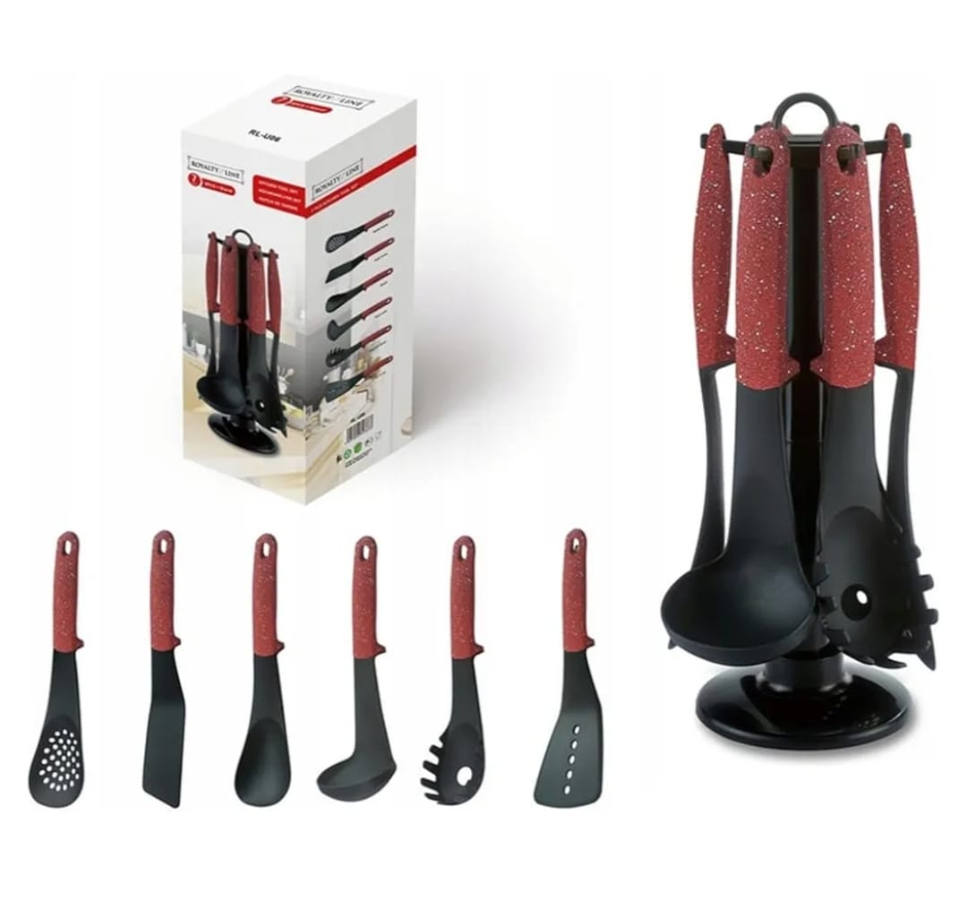 🖤 Juego de Utensilios de Cocina – 7 Piezas con Carrusel Giratorio