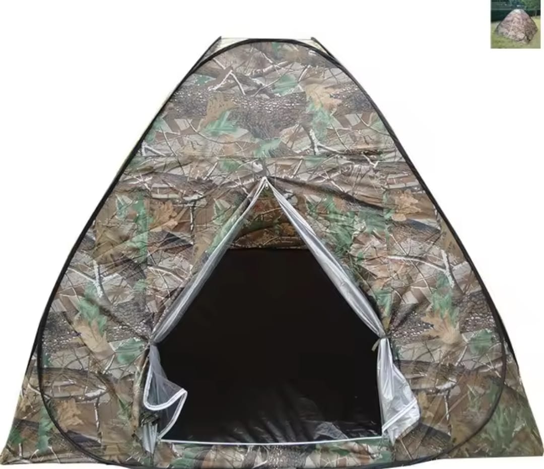 TIENDA DE CAMPAÑA CAMUFLADA AUTOMATICA CON CAPACIDAD PARA 3-4 PERSONAS. SUS MEDIDAS SON 190*190*130 . SU EMPAQUE OCUPA MUY POCO ESPACIO, ASI QUE PODRAS LLEVARLA A CUALQUIER PARTE CONTIGO.