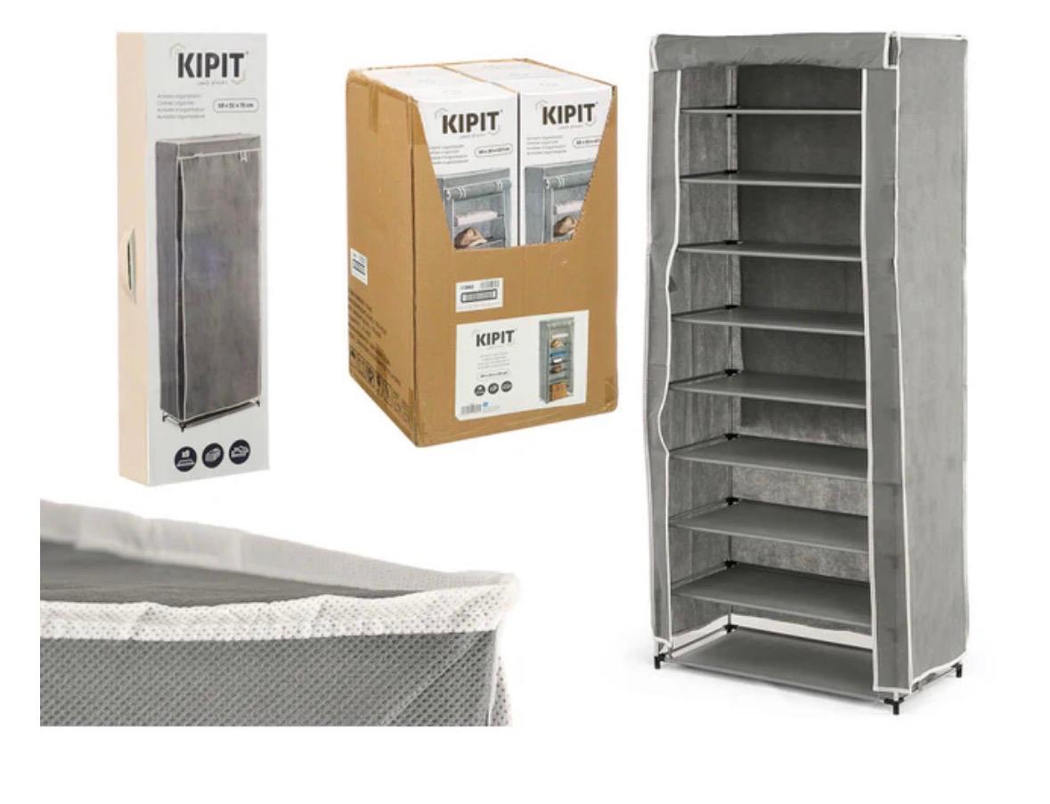 ZAPATERO 9 ESTANTES TELA GRIS. MEDIDAS MONTADO 58 x 32 x 157 cm