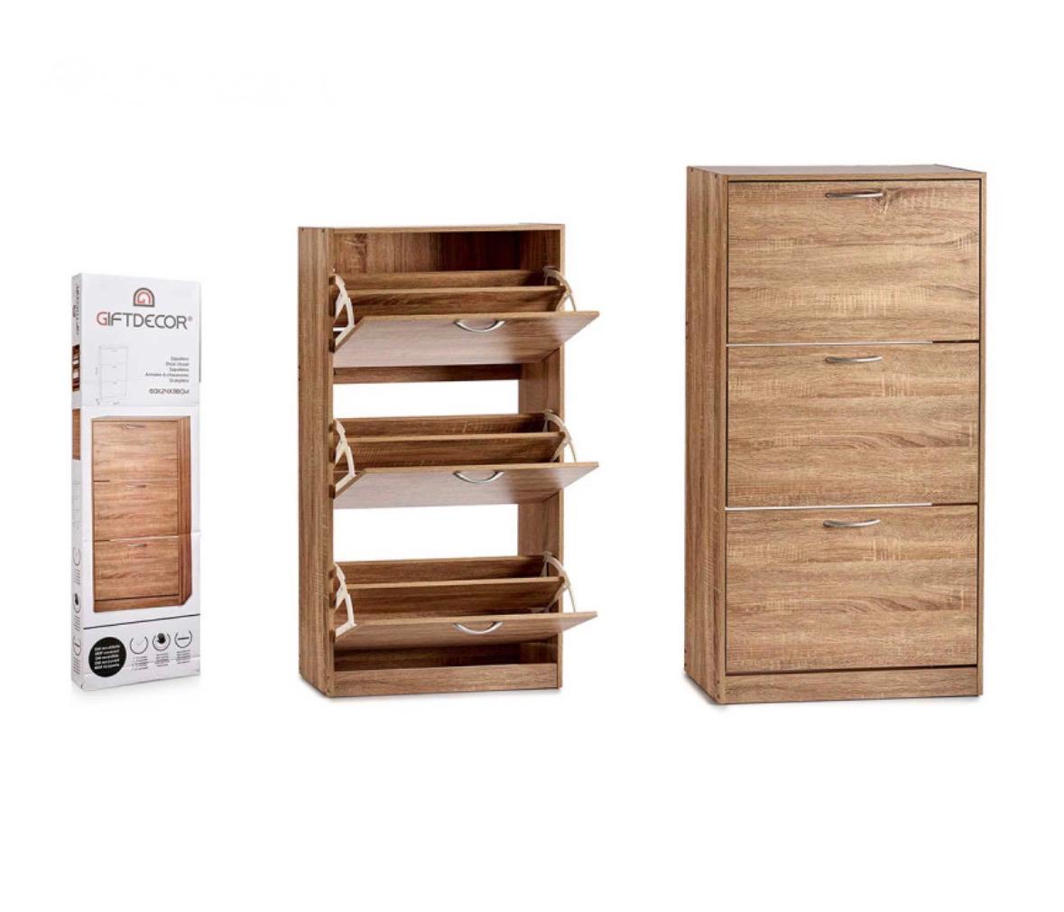 EL ZAPATERO DE MADERA AGLOMERADA EN COLOR BEIGE COMBINARÁ EN CUALQUIEN TIPO DE DECORACION. SU APARIENCIA ES MODERNA, Y NO OCUPA MUCHO ESPACIO. TIENE 3 CAJONES AMPLIOS. GRACIAS A SU ELEGANTE DISEÑO, PODRAS COLOCARLO TANTO EN LA ENTRADA DE CASA COMO EN OTRO LUGAR. COLOR: ROBLE. TAMAÑO: 116X60X24